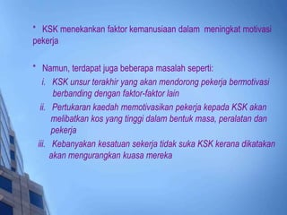 Motivasi pekerja adalah cabaran yang berterusan di tempat kerja. Melalui kaedah bayaran gaji kenaikan pangkat penghargaan dan sebagainya. Banyak sebab untuk sesuatu projek itu gagal.